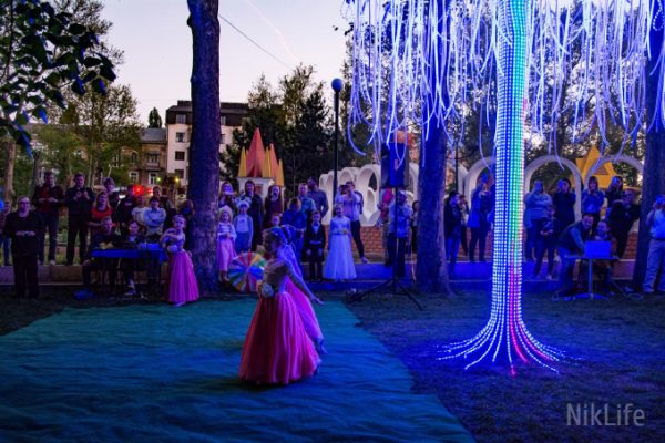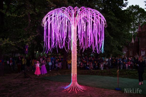 В николаевском детском городке «Сказка» открыли новый в прямом смысле яркий арт-объект – неоновое дерево. Торжественное открытие состоялось вечером в субботу, 28 апреля.