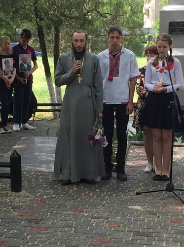 В 10 часов утра наши дети и кульбачане повзрослее провели небольшой тематический концерт… Батюшка прочитал молитву по погибшим защитникам г. Николаева и всем павшим в страшной войне. Возложили красивые цветы…»