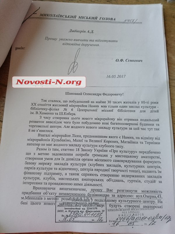 И напоследок, конечно же, нужно указать, какую же роль во всей этой афере все-таки сыграл мэр Сенкевич. Ведь на первый взгляд кажется, что самый заинтересованный в этой цепочке чиновник — это тот самый Гавриш, который вознамерился покупать недострой еще до того, как его начали продавать. Ответ на этот вопрос дает сам Гавриш, указывает в переписке с мэром Сенкевичем всего одну фразу: «виконуючи ваше усне доручення».