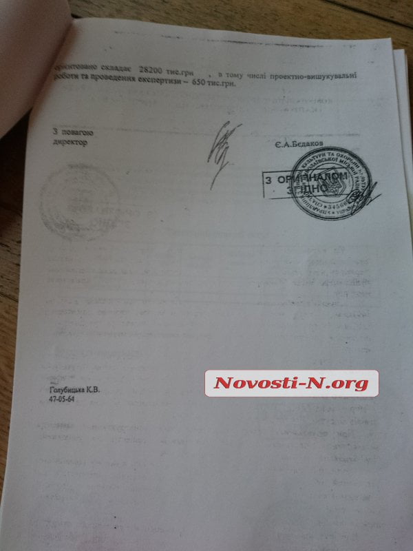 Стоимость завершения строительства, по мнению Бедакова, составляет 28 млн 200 тыс., в том числе проектно-изыскательные работы 650 тыс. грн. Уже зная modus operandi начальника УКСа, можно не сомневаться, что и эти цифры он определил «на глазок» — профессиональные строители, к которым обращались «Новости-N», называли суммы, примерно в три раза больше.