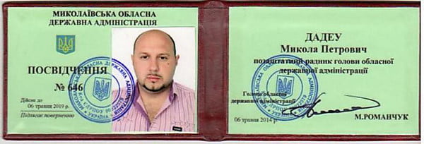 Стоит отметить, что в свое время Дадеу был весьма приближен к бывшему вице-губернатору Николаевской области Александру Болтянскому, который запомнился «письмами счастья», рассылаемыми предпринимателям. Дадеу был то ли помощником, то ли советником экс-вице-губернатора Болтянского. После ухода Болтянского «волонтера» связывали с первым вице-губернатором Николаем Романчуком, который был задержан по подозрению в получении крупной взятки. Николай Дадеу, по имеющейся информации, был помощником Николая Романчука.