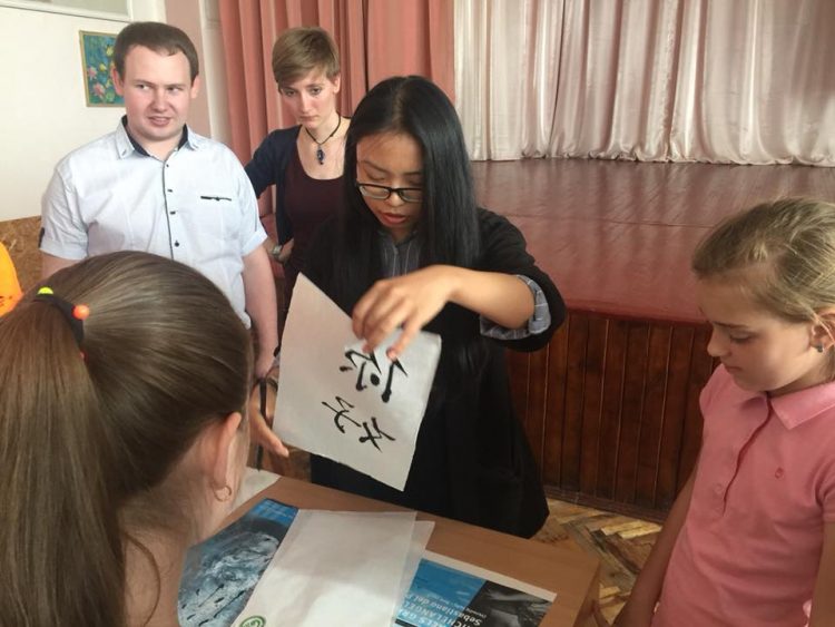 Ну, і на завершення уроку – каліграфія! Китайські ієрогліфи! Діти та батьки писали, пензликом і чорнилом, власні імена китайськими ієрогліфами. Шум, гамір, задоволені обличчя дітей, обмін враженнями… це було неймовірно!», — написала про захід Тетяна Філіппова, учитель початкових класів МЗОШ №1 імені Олега Ольжича.