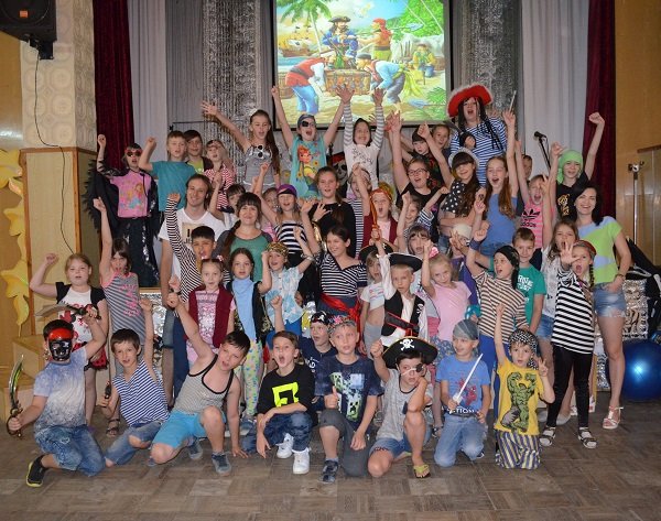 «7 червня відмічено в календарі черепом та кістками – не тому, що небезпечно, а тому, що присвячено пошукам скарбів. Пірати тут – не кровожерливі та жадібні, а сильні та сміливі, відважні та щиросердні. Вихованці табору разом з вихователями та вожатими під керівництвом доньки Джека Горобця (в звичайному світі – організатор дозвілля І.В.Хрипко) з самого ранку опинились на борту величезного піратського судна».