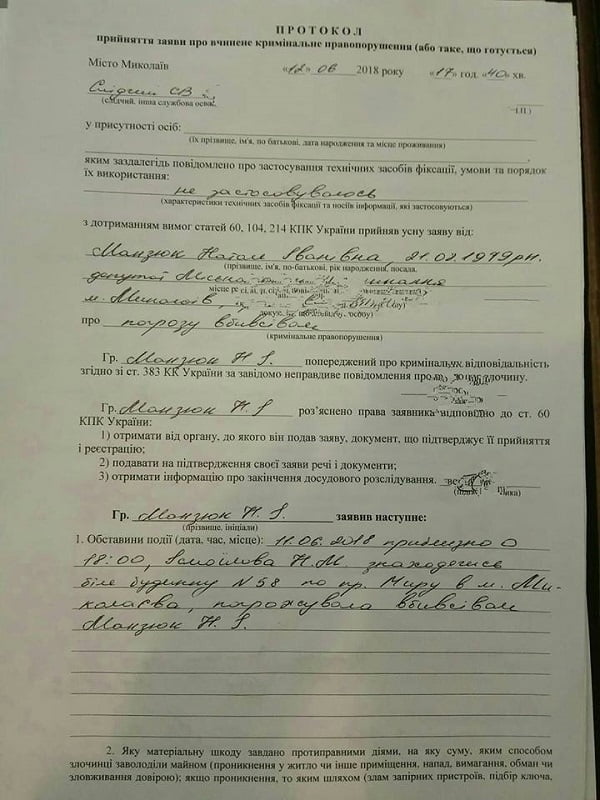 «Сегодня в телефонном режиме были угрозы по поводу нелегальной торговли на моём 38 округе. От полиции Ингульского района никакого звонка после того, как написала заявление о попытке убийства!», — написала Манзюк.