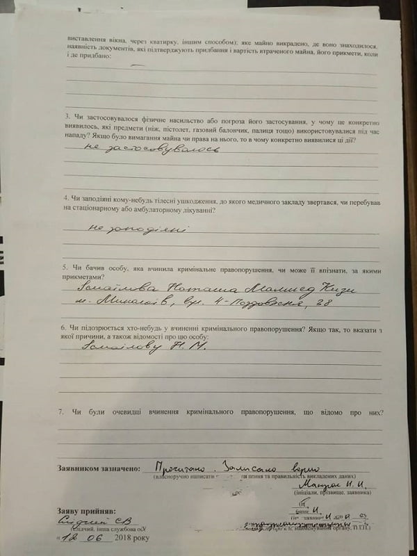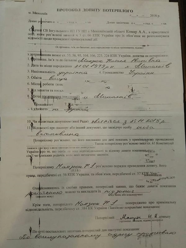 Кроме того, депутат опубликовала фотокопии заявления в полицию и её допроса.
