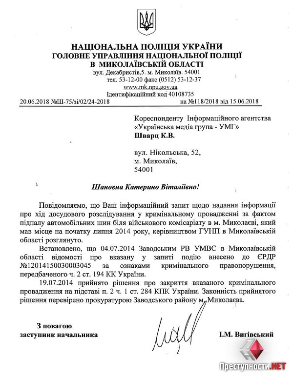 Полиция закрыла уголовные производства по факту поджогов в Николаеве в июле 2014 года военкомата и автомобилей волонтеров.