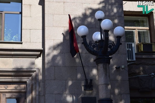 В пятницу, 13 июля, активисты установили два флага Украинской повстанческой армии на фасаде здания Николаевского городского совета.
