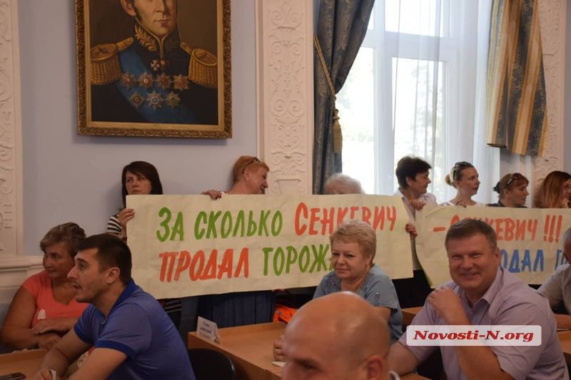 Николаевский городской голова Александр Сенкевич выступил против пикетчиков, которые стоят по периметру сессионного зала с плакатами, — сообщает Новости-Н. Об этом шла речь в ходе 40-й очередной сессии Николаевского горсовета 17 июля.