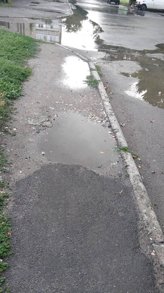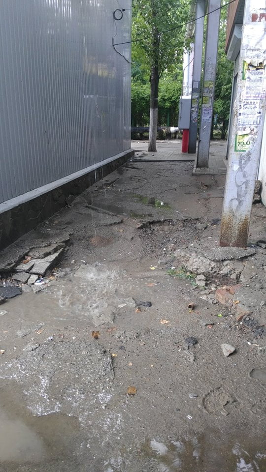 «Перед воротами школы регулярно после дождей собираются огромные лужи. Зайти со стороны аллейки невозможно, тротуар разломан, камни, грязь, вдобавок ко всему прямо на голову со стока соседнего двухэтажного магазина льётся вода (зимой/весной висят огромные сосульки). Какой «архитектор» давал разрешение на сооружение этого здания!? Раньше там вообще была зелёная зона, росли деревья и цветы. А сейчас?