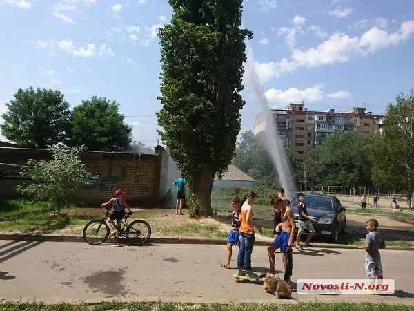 «Фонтан высотой до 6 этажа», - во дворе жилого дома в Николаеве прорвало водопровод