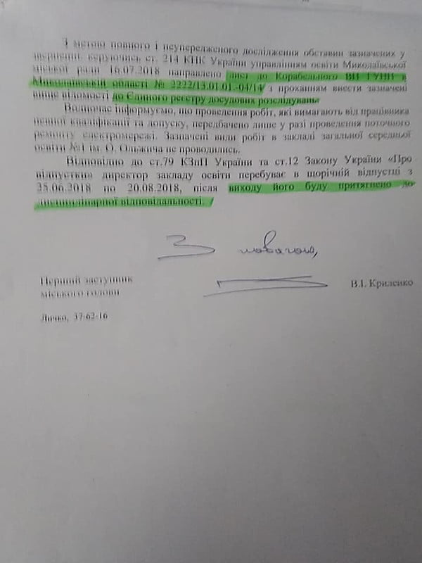 Об этом свидетельствует ответ первого вице-мэра Владимира Крыленко депутату Николаевского горсовета Павлу Зоткину, который он опубликовал на своей странице в соцсети Facebook.