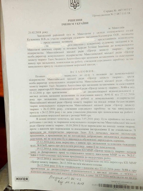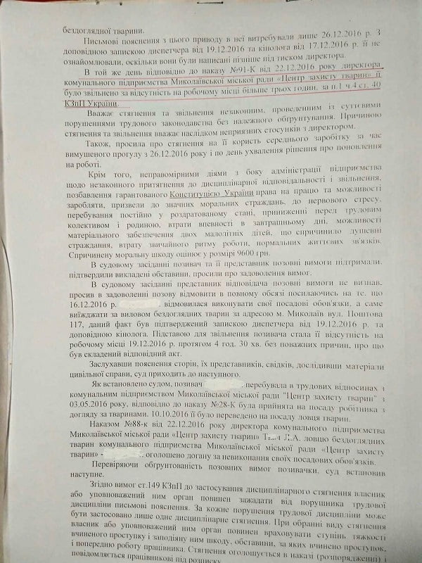 По постановлению Государственной исполнительной службы на хозрасчетный счет коммунального предприятия «Центр защиты животных» Николаевского городского совета был наложен арест, из-за чего работа КП заблокирована.