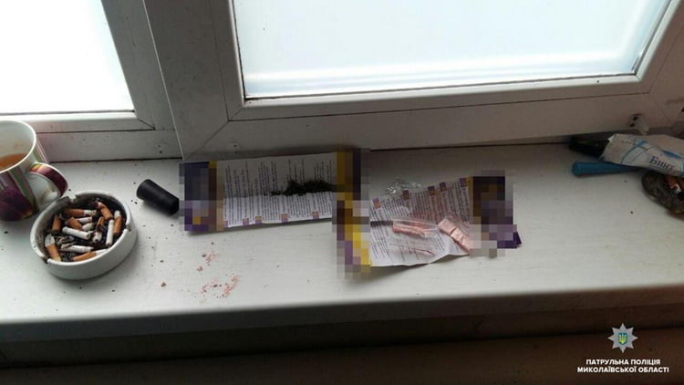Передав пострадавшего врачам, патрульные заметили на подоконнике бумажный сверток с измельченным зеленым веществом и пакетики с порошкообразным веществом, похожими на наркотические.