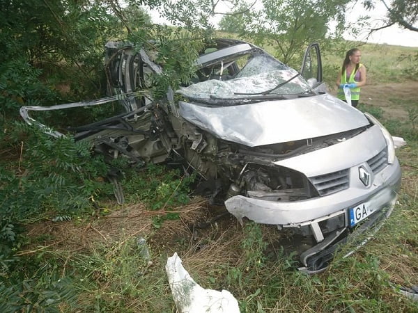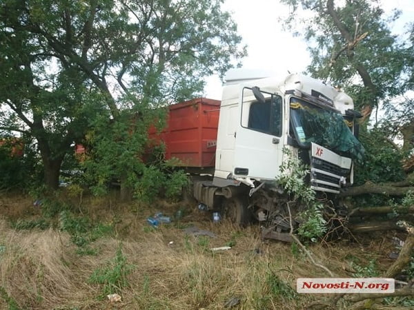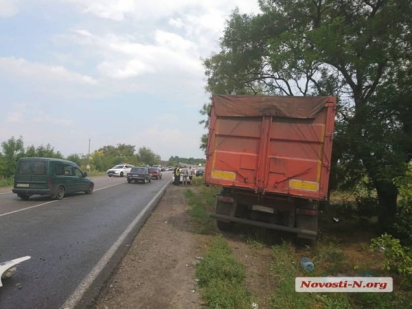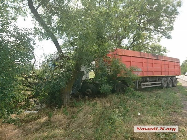 ДТП произошло возле поворота на село Сеньчино. Автомобиль «Рено», ехавший со стороны Николаева в направлении Одессы, по неизвестным причинам резко изменил траекторию движения, выехал на встречную полосу, где столкнулся с зерновозом.