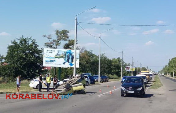 Сегодня, 13 августа, около 14:25 в Корабельном районе г. Николаева произошло ДТП, в результате которого автомобиль перевернулся на крышу и пострадали все 6 человек, ехавшие в нем — трое взрослых и трое детей (возрастом от 7 до 10 лет).
