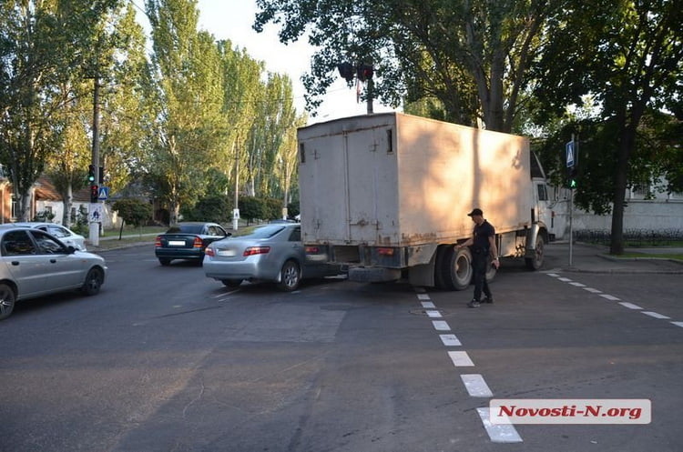 Вечером во вторник, 14 августа, на пересечении ул. Пушкинской и Адмирала Макарова в Николаеве столкнулись грузовик «КамАЗ» и легковой автомобиль Toyota Camry.