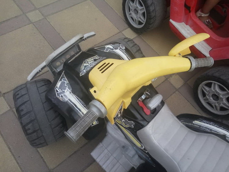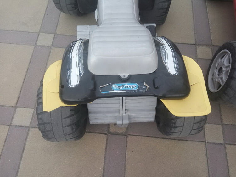 Батут-горка — настоящая радость для малышей, всего 20 грн за 10 минут счастья. Электромобили и велосипеды. Заплати и лети! Вот и заплатили, поехали, водителю 4 года, ехал, рулил — бац, врезался. Крыло отпало… Смотритель аттракционов грозно: «Платите штраф! 50 гривен!»