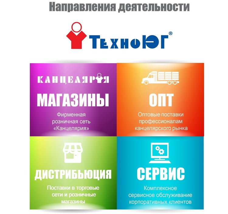 За 25 лет продуктивной работы на канцелярском рынке «ТехноЮГ» приобрел бесценный опыт и заслужил доверие партнеров в Одесской, Херсонской, Киевской, Черкасской и Николаевской областях. Благодаря сотрудничеству с крупными торговыми сетями, наша продукция представлена на витринах магазинов «Антошка», «Таврия В» и «Сильпо». Офисы в Одессе и Киеве поддерживают партнерскую сеть и сопровождают клиента на каждом этапе сделки. Новый функционирующий филиал ТехноЮГа в Николаеве помогает покупателям удобно заказывать канцелярию и оперативно решать возникающие вопросы.