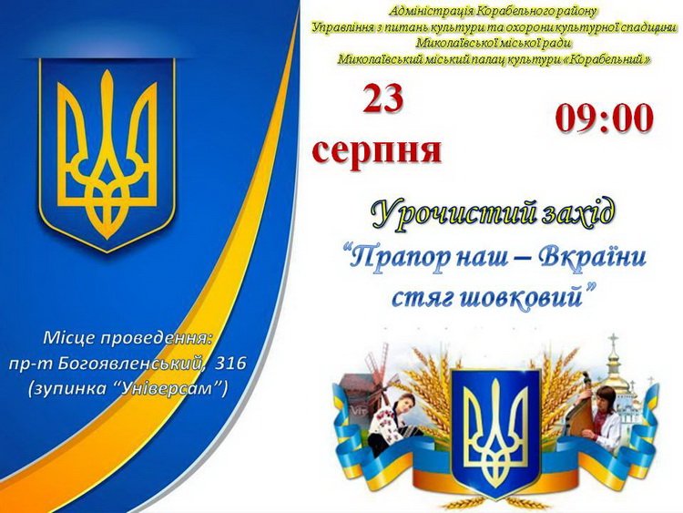 Вас запрошують долучитися до відзначення цього дня під час урочистостей «Прапор наш — вкраїни стяг шовковий», що відбудуться 23 серпня о 09:00 біля флагштоку, що встановлено на перетині вул. Металургів і пр-ту Богоявленського.