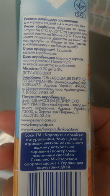 «Купила детский сок «Карапуз» в супермаркете «Таврия В», который находится на ул. Глинки. Тыквенный сок. Сроки — аж до 2019 г!!! (я представляю, ЧТО там было бы в 2019 г, в этой упаковке, доживи этот сок до своего срока истечения годности…)