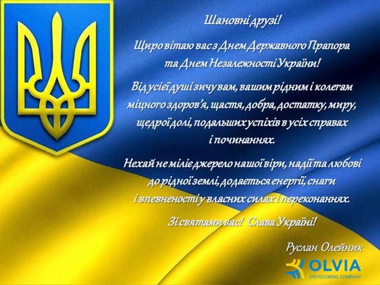 «Хочу в канун Дня Незалежності побажати миру, здоров’я та всього самого найкращого вам та вашім родинам. Побажати нам усім стабільної роботи та нових трудових досягнень».