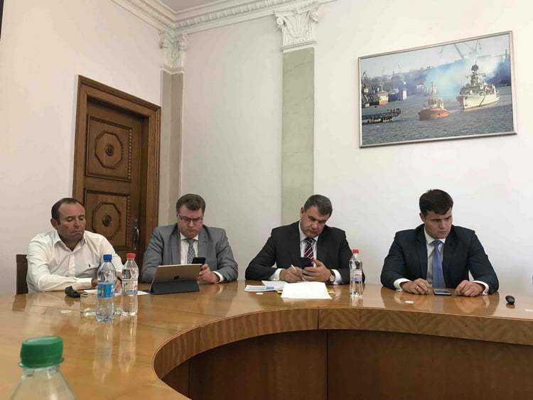 З метою участі в обговоренні ТЕО з робочім візитом на підприємство прибули: державний секретар Мінінфраструктури України Андрій Галущак, директор Департаменту реформування та функціонування морського та річкового транспорту Міністерства інфраструктури Олександр Басюк, голова Проектного офісу з питань державно-приватного партнерства в інфраструктурі «SP3ILNO» Тарас Бойчук, спеціаліст з інвестицій Міжнародної фінансової корпорації (IFC) Олег Кудашов, голова Профспілки робітників морського транспорту України Михайло Кірєєв, а також представники ДП «Адміністрація морпортів України».