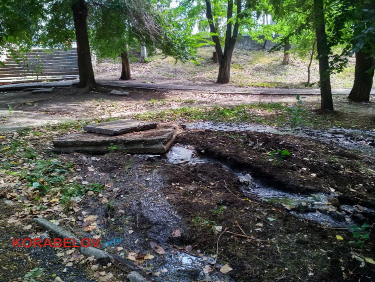 Помимо этого, прорвало также в сквере «Комсомольский» (между зданием Корабельного районного суда и рынком по улице Самойловича). Здесь образовались целые «озёра», которые с трудом удавалось обойти местным жителям.
