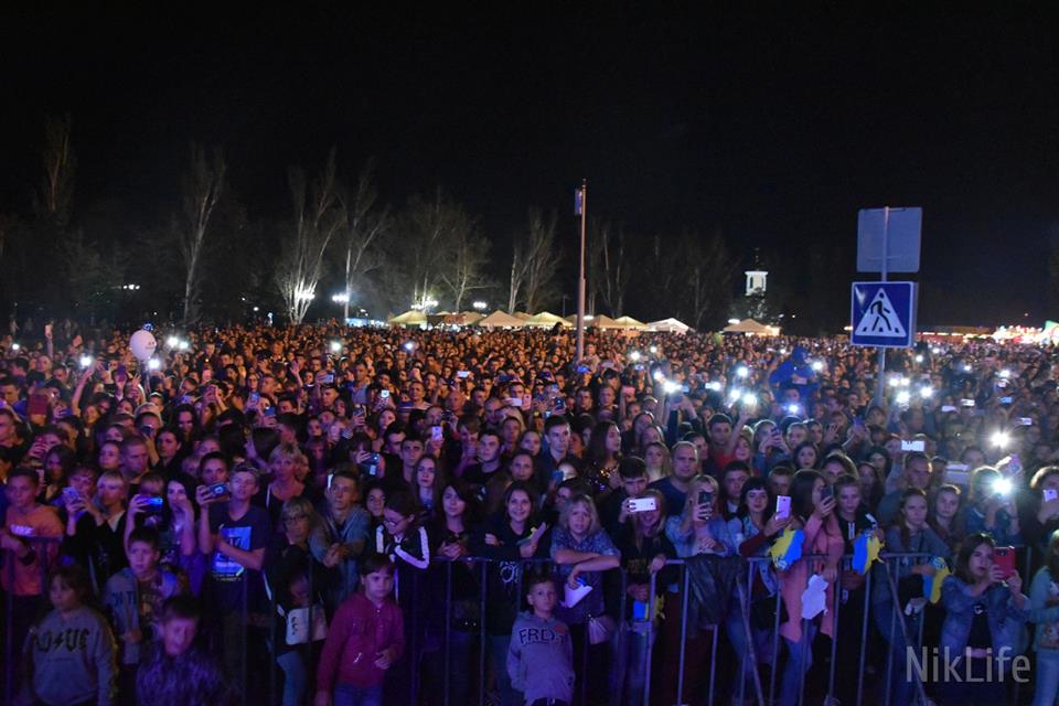 Несколько тысяч николаевцев собрались на площади чтобы оторваться на концерте. В течении всего вечера для них выступали лучшие музыканты и танцоры Николаева. Открывали программу коллектив Николаевского художественного русского драматического театра вмсте с оркестром ВМС Украины, а после танцевальный коллектив Слайс своим коронным номером задал тон следующим выступлениям. Вечерний большой концерт, как и в прошлом году, стал площадкой для выступления николаевских участников «Голоса» – Александры Казаковой и Екатерины Тихоновой. Среди выступающих были также танцоры из коллективов «Каприз», «Пасадена», а вокальными номерами порадовал «Южный патруль» и студенты колледжа культуры. После этого своими ритмами покоряли барабанщики из Rhythmmen drum show, чем вызвали фонтан ярчайших эмоций. К слову, удивляли они не только своим умением чеканить ритм, но и необычными неоновыми костюмами.