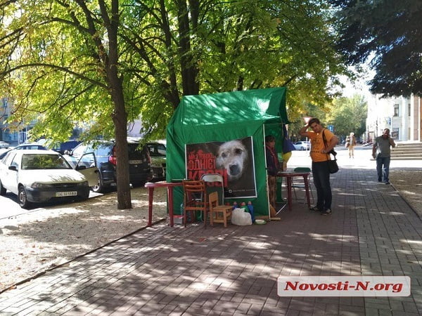 Неизвестные изрезали и разгромили палатки "зоозащитников" у мэрии Николаева
