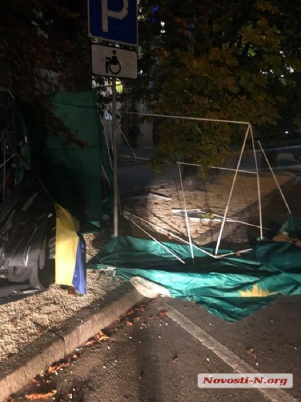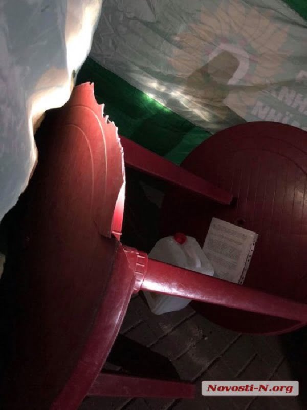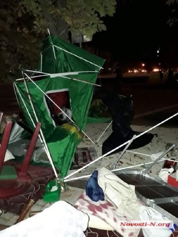 Неизвестные изрезали и разгромили палатки "зоозащитников" у мэрии Николаева