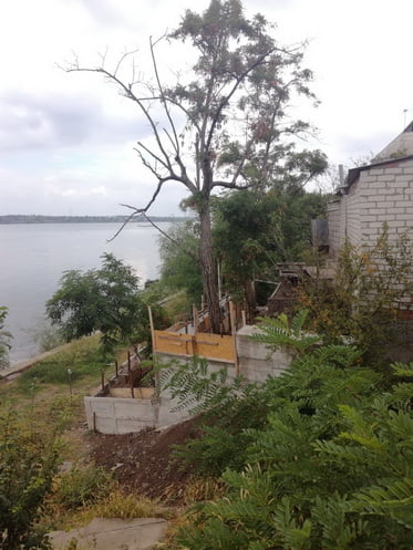 Автор фееричный д....еб. Разве не понятно то, что люди укрепляют фундамент, пытаясь спасти дом от сползания вниз, к реке?