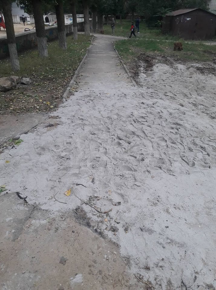 возле 32дома песком засыпали и всё...уроды бл***