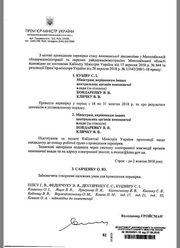 Гройсман отправил комиссию проверить дисциплину в Николаевской ОГА и райадминистрациях