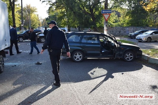 Днем в среду, 10 октября, в центре Николаева, на пересечении улиц Спасской и Шнеерсона, столкнулись автомобили Mazda 626 «на евробляхах» и Toyota Land Cruiser Prado.