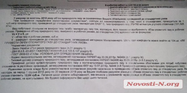 Предприятие отмечает, что сумма задолженности за период с 1 декабря 2015 года по 30 сентября 2018 года указанная в квитанциях, которые получили потребители 23 ноября, это справочная информация «до момента законодательного урегулирования данных разногласий в нормативных актах». Пока что с потребителей не требуют компенсации, «Николаевгаз Сбыт» просит оплачивать за потребленный газ по показаниям счетчика.