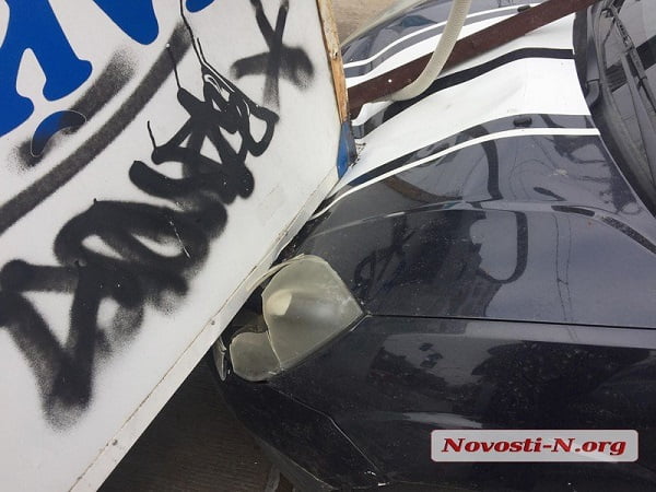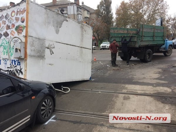Демонтированный в Николаеве киоск выпал из грузовика на легковую машину