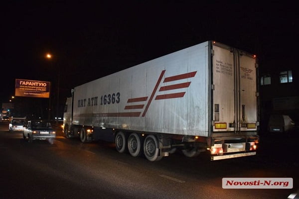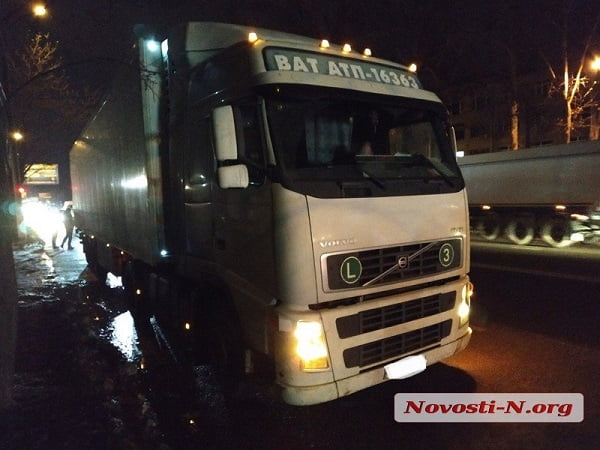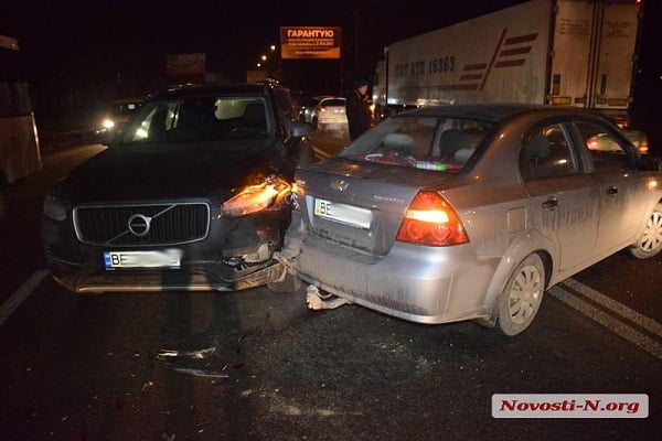 Вечером в четверг, 6 декабря на проспекте Богоявленском (Октябрьском) в Николаеве столкнулись седельный тягач Volvo с полуприцепом, легковой автомобиль Chevrolet Aveo и внедорожник Volvo XC90.