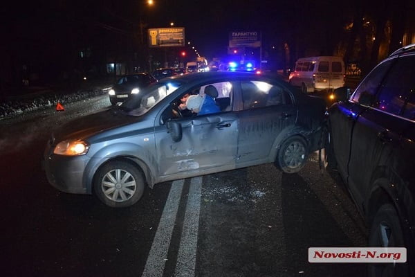 Седельный тягач «Вольво» ехал по проспекту со стороны улицы Космонавтов в направлении Широкой Балки. Возле заводоуправления ГП «Зоря»-«Машпроект» водитель начал перестраиваться в правый ряд, зацепив при этом ехавший справа «Шевроле». После столкновения с тяжелым автомобилем легковушку занесло, она резко изменила траекторию движения, выехала на встречную полосу, где столкнулась с внедорожником «Вольво».