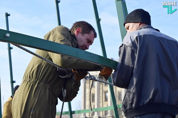 По информации начальника городского управления по вопросам культуры и охраны культурного наследия Юрия Любарова, сегодня работы по монтажу елки и световых фигур выполняют сотрудники фирм «Люмьер» (Одесса) и «Альпсервис» (Николаев).