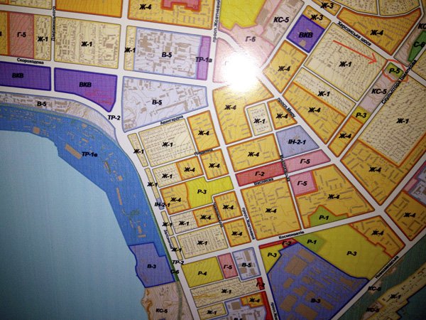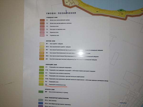 У Плані зонування міста, прийнятому на основі існуючого Генплану, сьогоднішнім складом міськради, під головуванням існуючого мера Сєнкевича, ця ділянка визначена, як «Р-5» «Рекреаційно-розважальна зона» (на фото обведено та підкреслено):
