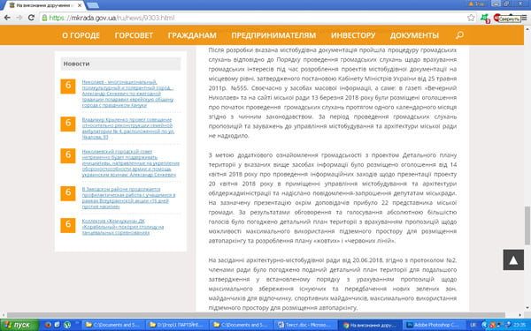 Далі довго та заплутано йдеться про проведення «деталізації» рішень діючого Генерального плану території м. Миколаєва. Вказується, що на засіданні архітектурно-містобудівної ради від 20.06.2018, згідно з протоколом №2, членами ради було погоджено поданий детальний план території: