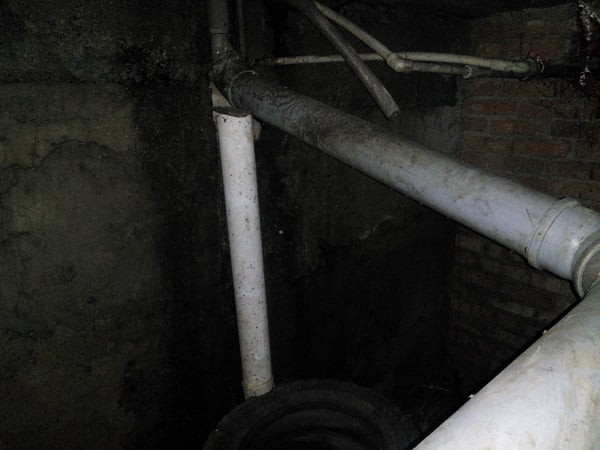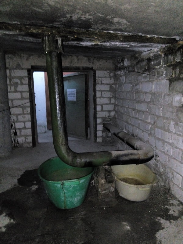 В подъезде происходит затопление квартир из-за протекания крыши дома и отсутствия соединения трубы канализации с крышей, потому при любых осадках жильцы круглосуточно с ведрами вынуждены дежурить на техническом этаже, чтобы хоть как-то спасти свое имущество от затопления.
