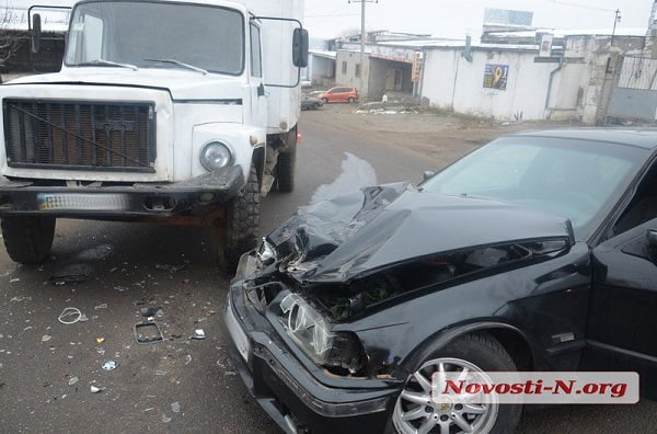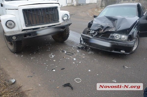 В Николаеве столкнулись грузовик и BMW - водителю легковушки оторвало часть уха