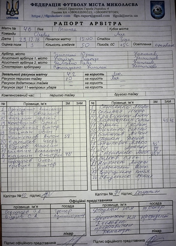 Арбитрами матчу були Ю. Зеленський, В. Нагайчук,