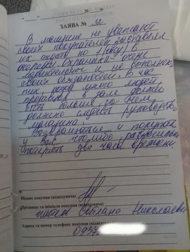 «В магазине не уважают своих покупателей, заставляя их ждать по часу в очереди. Охранники — очень медлительны и не выполняют своих обязанностей. В час пик, когда много людей, продавцов в зале должно быть больше, за чем должно следить руководство магазина…» — сказано в одной из недавних записей в «Книге жалоб» указанного супермаркета, оставленных местной жительницей Светланой.