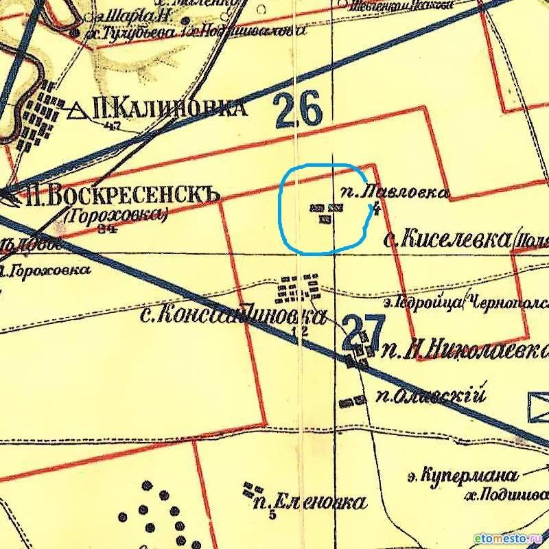 Лежала Павлівка між сучасними селами Червоне і Костянтинівка. Своєї церкви у Павлівці не було, і селяни належали до приходу храму св. Костянтина та Олени у селі Костянтинівці.