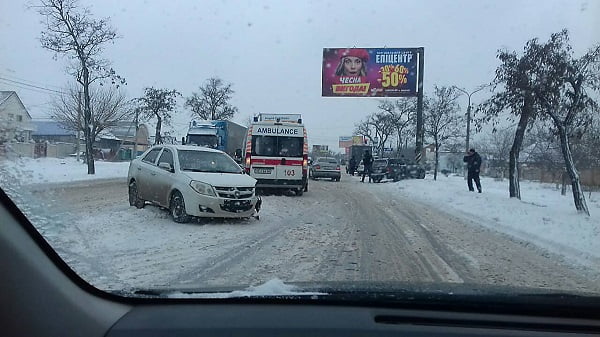 В Корабельном районе Николаева во вторник, 8 января, на пересечении проспекта Богоявленского и улицы Прибугской столкнулись четыре автомобиля.