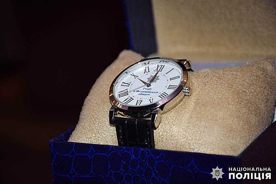 Полиция вручила наградные часы николаевцу, задержавшему грабителя. Видео