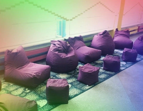 Хорошее начало для "уставших" ученичкоФ... И как мы,бежняжки,учились в в 60-70-80х без зоны отдыха с мягкими уголками на всех этажах,без кулеров с кипятком для чая,мощных фильтров для питьевой воды для всех учеников и главное без удобных кресел-мешками.(есть где развалиться и потешить уставшую спину и зад-цу за 45 минут тяжелейшей разгрузки вагонов)