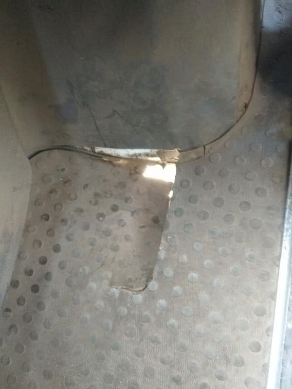 «Добрый день! Только что села в маршрутку номер 45, спасибо, что девушка показала мне на эту дыру в полу, насквозь!!!! А если бы не показала, то просто провалилась бы и сломала себе ногу! Когда уже машины будут проверять перед каждой поездкой?!!! Это, пардон, даже не случай с трусами(», — написала она.